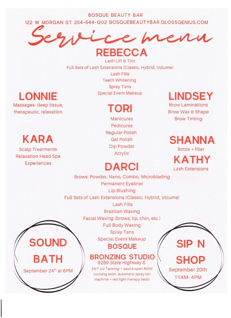 Use the link to register for the parade!https://www.cognitoforms.com/BosqueBeautyBar/_4thOfJulyParadeRegistrationForm
