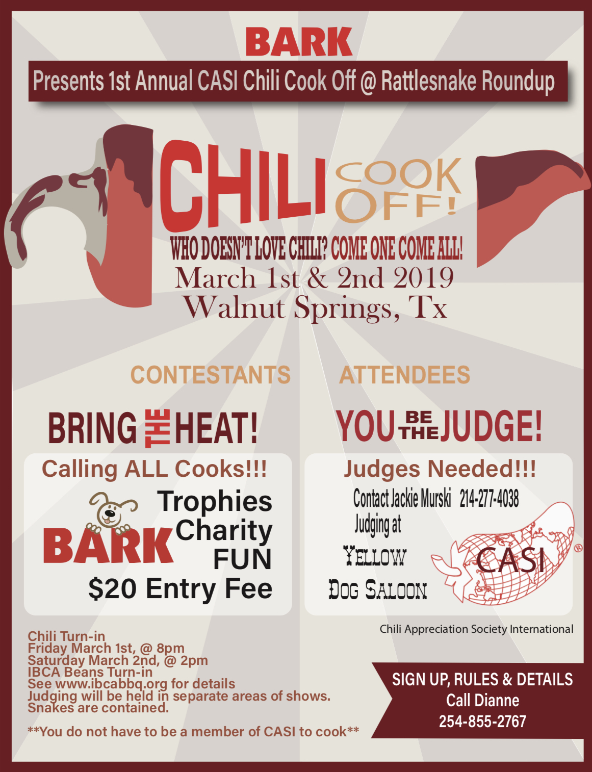 BARK Chili Cookoff Calendar Add to Calendar Add to Timely Calendar Add to Google Add to Outlook Add to Apple Calendar Add to other calendar Export to XML When: March 1, 2019 – March 2, 2019 all-day 2019-03-01T00:00:00-06:00 2019-03-03T00:00:00-06:00 Animal Rescue Community Family Fun chili