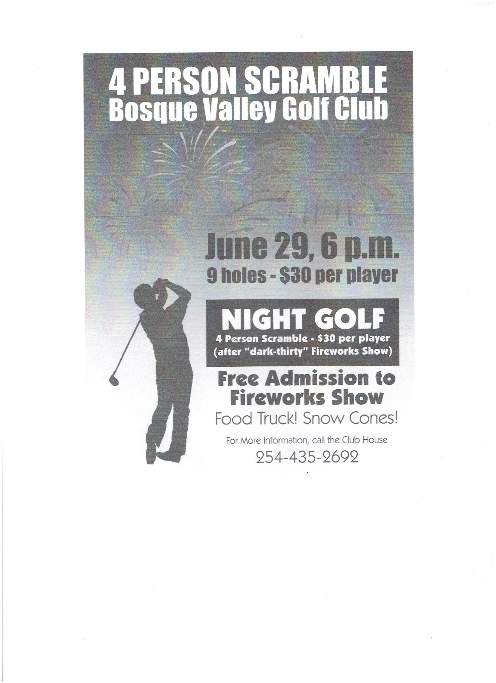 Golf Course Fireworks & Night Golf Calendar Add to Calendar Add to Timely Calendar Add to Google Add to Outlook Add to Apple Calendar Add to other calendar Export to XML When: June 29, 2019 @ 6:00 PM – 7:00 PM 2019-06-29T18:00:00-05:00 2019-06-29T19:00:00-05:00 Contact: Club House 254-435-2692 Community Family Fun Fireworks Food Truck golf scramble Snow cones